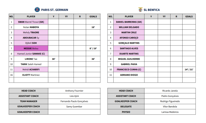 在首届葡超希望之星的冠军组争夺战中,1/4决赛已经打响,大巴黎面对本菲卡,之后是塞维利亚面对波尔图,然后是巴塞罗那面对葡萄牙体育,最后是皇家贝蒂斯面对富勒姆。
