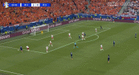 开场阶段,加克波连续获得冲击球门的机会,这体现出了荷兰以右路带动左路的非对称进攻思路。波兰迅速做出反应,他们的防守队形进一步向中路收缩,通过限制德佩的背身拿球来寻求反击机会。由于阵型比较松散,两名“边翼卫”位置过于靠前,阿克和德弗赖身前空当很大,中场球员必须扩大防守面积来减轻放线的压力。斯豪滕协防右路时被对手轻松抹过,费尔曼因动作过大吃到了黄牌,就在两名年轻中场还在适应大赛氛围的阶段,波兰通过定位球先拔头筹。