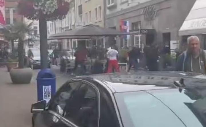 下午3点30分,阿尔巴尼亚和塞尔维亚球迷在一家餐馆外发生冲突,警察介入。