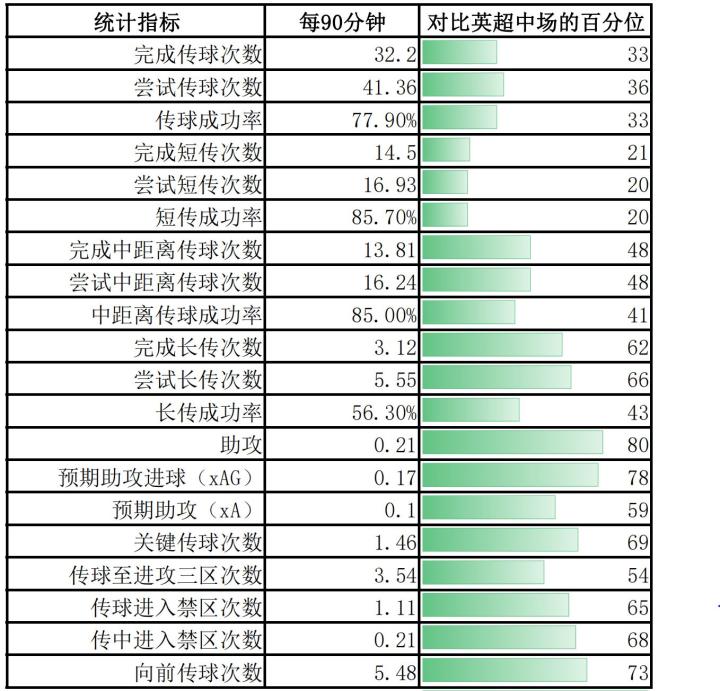 23/24赛季英超沃顿的传球数据(数据来源于FBREF)