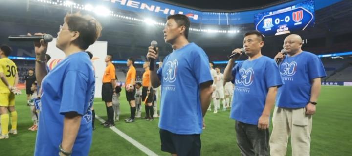 来自上海申花俱乐部的官方消息,昨晚中超第15轮上海申花vs成都蓉城的比赛开始前,申花俱乐部向四位俱乐部工作人员颁发“30周年一路陪伴奖”,这四人还担任了本场国歌领唱人。
