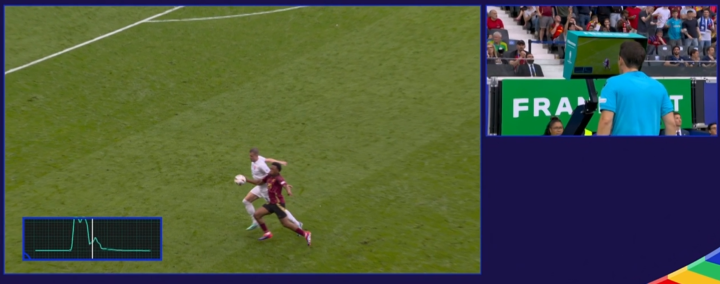 在欧洲俱乐部赛场上,欧冠联赛和意甲联赛也使用了半自动越位识别技术,只是他们都没有使用装有传感器的智能足球,所以在VAR回放时不会屏幕上不会出现信号波动,只能通过AI人工智能来判定。