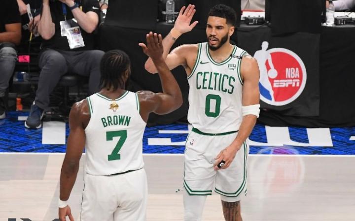 总决赛期间,杰伦-布朗场均贡献下20.8分5.4板5助,塔图姆场均得到22.2分7.8篮板7.2助攻,后者三项数据都是绿军全队最高。