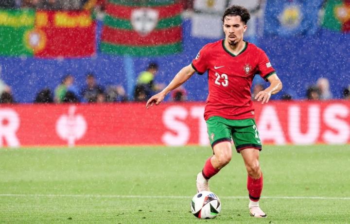 欧洲杯小组赛F组首轮,葡萄牙队2-1逆战捷克队,本场比赛维蒂尼亚首发出战,表现出色,赛后评分8分为全场最高分。