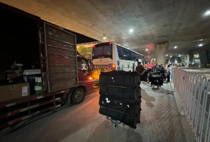 与在天津时一样,海港预留了前往北京期间的大巴车和酒店,以备万一从北京出发的航班再度被取消。而无论是15日晚上在天津抵达机场后又原路返回,还是16日深夜和17日凌晨分批抵达五华县,海港的后勤保障团队可以说都忙上了一个通宵用于行李的装车运输等工作。