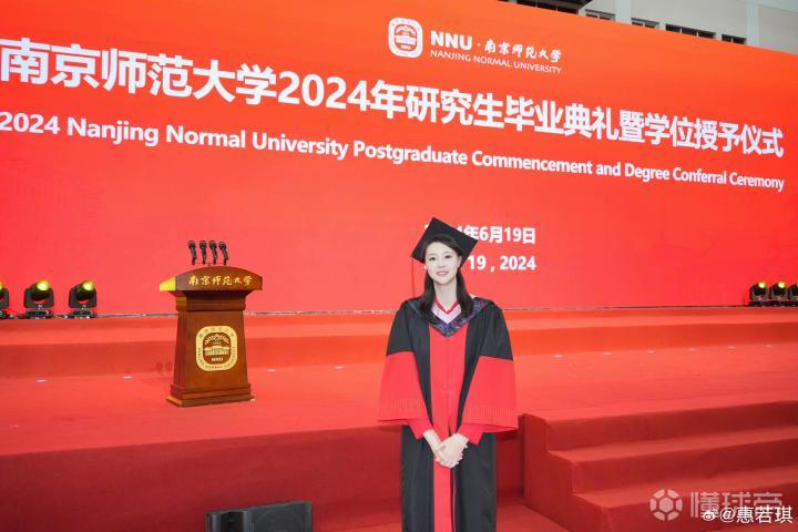 6月19日,南京师范大学举行2024年研究生毕业典礼暨学位授予仪式。前中国女排队长、奥运冠军惠若琪作为体育科学学院2024届博士毕业生代表发言。