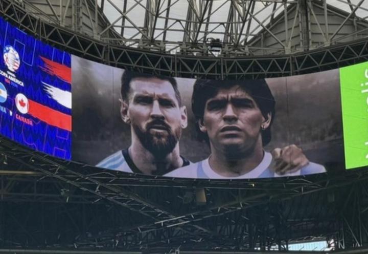 跨越时空,美洲杯开赛前屏幕上出现了梅西和马拉多纳的合影Anitara @懂球帝2024-06-21 10:00在2024美洲杯揭幕战开始前,主办方在梅赛德斯-奔驰体育场内的360度屏幕上展示了梅西和马拉多纳的影像。当球员们还在场上进行赛前热身时,一张照片震撼了在场的所有观众,并在社交媒体上引起轰动。梅西和马拉多纳同时出现在梅赛德斯-奔驰体育场内部的屏幕上。在场的球迷们开始向阿根廷国家队的偶像们致以热烈的欢呼。此外,照片里还有一个特别的细节:现在的阿根廷10号球员梅西拥着当年的马拉多纳。展开更多