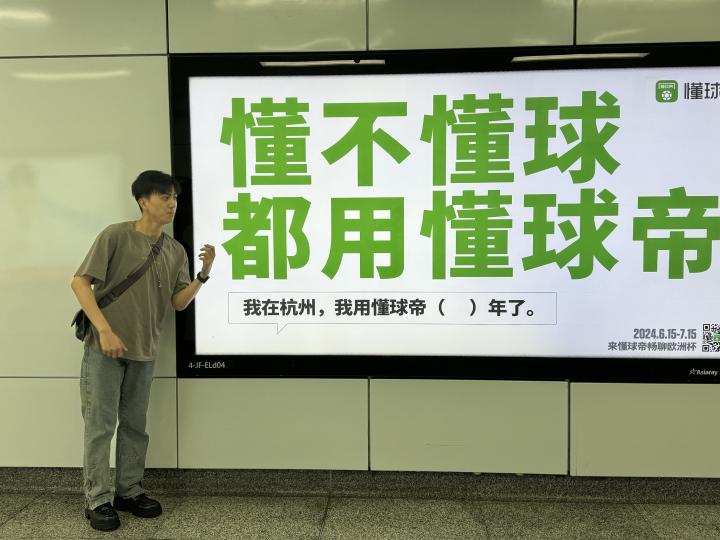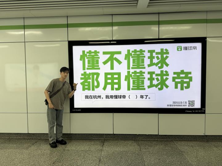 在杭州地铁景芳d口看到了懂球帝广告牌,特来合影留...