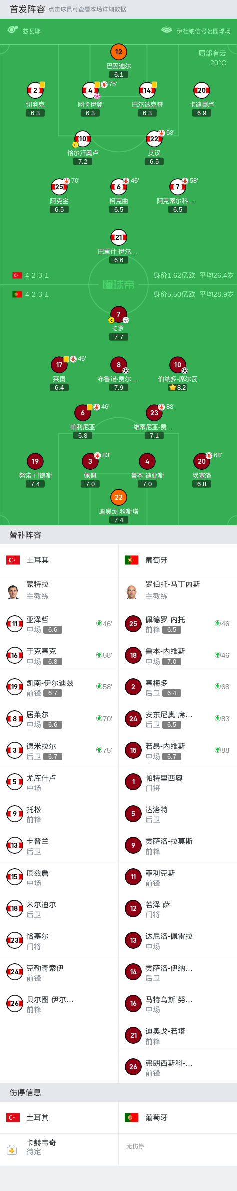 康师傅战报丨葡萄牙3-0大胜土耳其,C罗助B费破门,B席建功