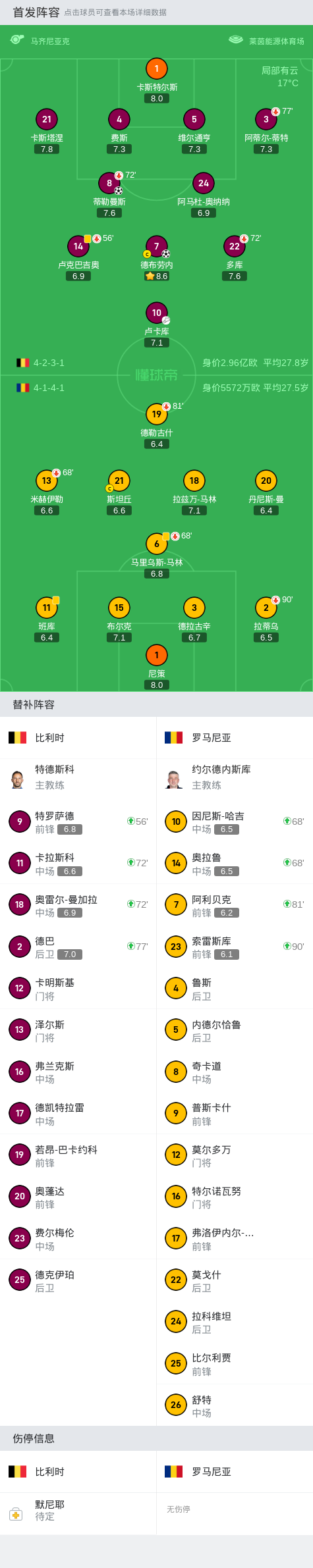 康师傅战报丨比利时2-0罗马尼亚,丁丁破门,卢卡库进球被吹