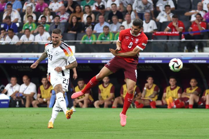 欧洲杯小组赛末轮的一场较量中,瑞士在上半场结束后暂时1-0领先东道主德国。