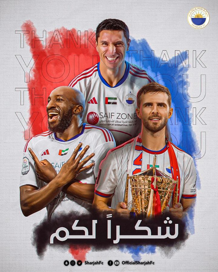 阿联酋球队沙迦官方消息,皮亚尼奇、马雷加、塔利亚维合同到期离队。