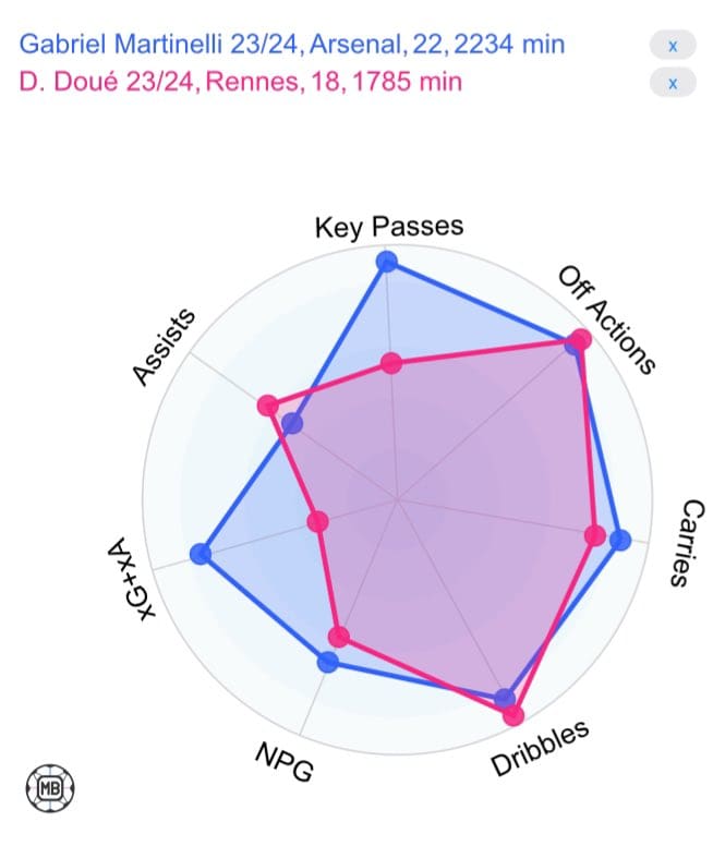 杜埃的多面性很适合阿森纳,他在小空间下的作业能力和盘带精度会是阿森纳边路的巨大财富,同时他未来也有着广阔发展空间。