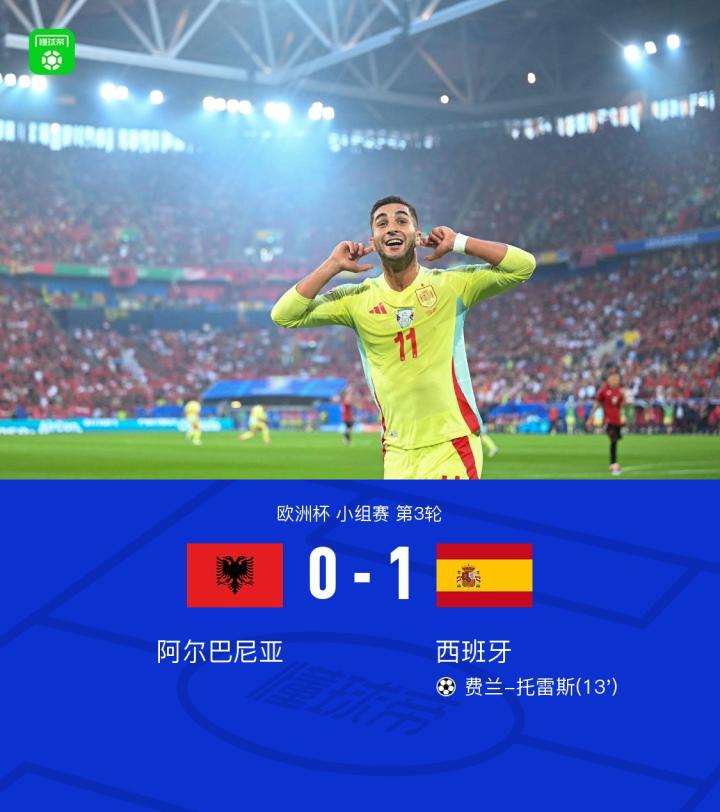 康师傅战报丨西班牙1-0阿尔巴尼亚全胜晋级,费兰-托雷斯制胜