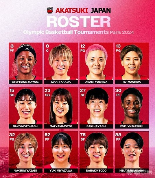 日本女篮巴黎奥运会12人名单出炉,平均身高为173.6cm