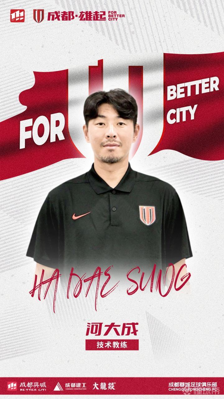 官方消息,郑仁焕、河大成加入成都蓉城一线队教练组,分别担任助理教练和技术教练。