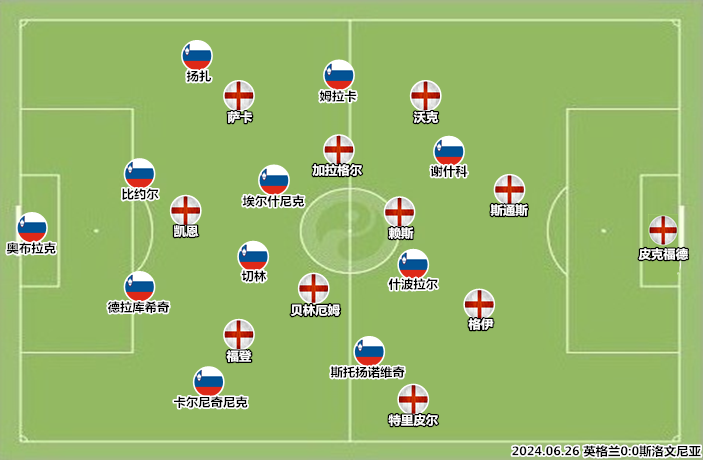 两年前还只是欧国联C档球队,如今已经在欧洲杯舞台上创造了历史,斯洛文尼亚的核心竞争力就是设计精巧的后场轮转体系,他们的中后卫控制面积较大,中前卫可以同后卫交叉换位,有球区域既有明确的盯人部署,也有协防和保护。两翼缺少制造纵深的能力,右路技术含量不足,英格兰只能围绕左路的福登展开进攻。特里皮尔在逆足位置上踢得别扭,只有贝林厄姆可以为福登提供支援,英格兰无法靠“双中锋”从中路打出层次,前插配合凯恩抢点的球员换成了加拉格尔,进攻效率自然无法保证。