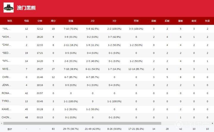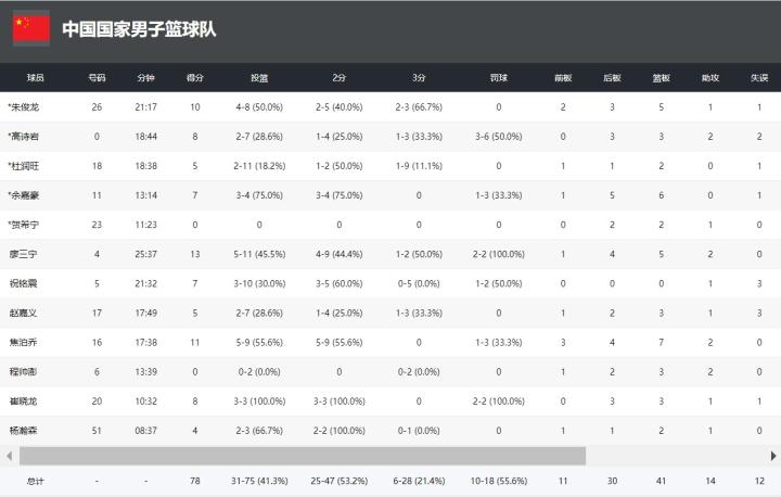 北京时间6月26日,男篮热身赛中国男篮对阵澳门黑熊,本场比赛十分焦灼,三节结束中国男篮领先6分,末节澳门黑熊哈特带队逆转,最终中国男篮78-83不敌澳门黑熊。
