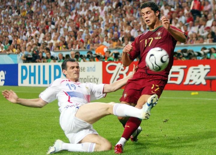 时间回到2006年世界杯半决赛,葡萄牙队vs法国队的交锋中,C罗代表葡萄牙队首发出战,法国队的首发名单里也有萨尼奥尔,而且两人在场上是对位。