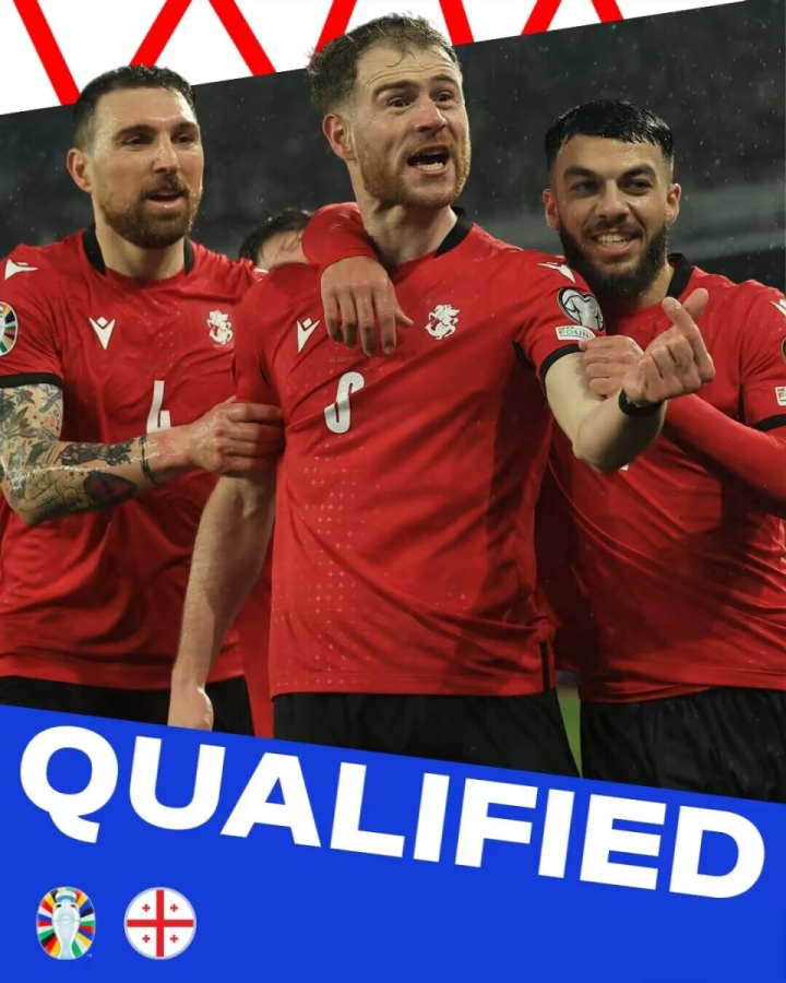 欧洲杯正赛,格鲁吉亚在波西米亚铁骑身上拿到1分,在葡萄牙身上取得首胜。