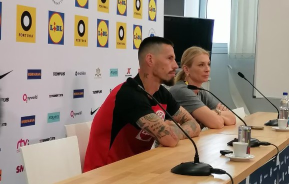 斯洛伐克将在欧洲杯16强对阵英格兰,斯洛伐克传奇中场、现任国家队助教哈姆西克出席了新闻发布会。