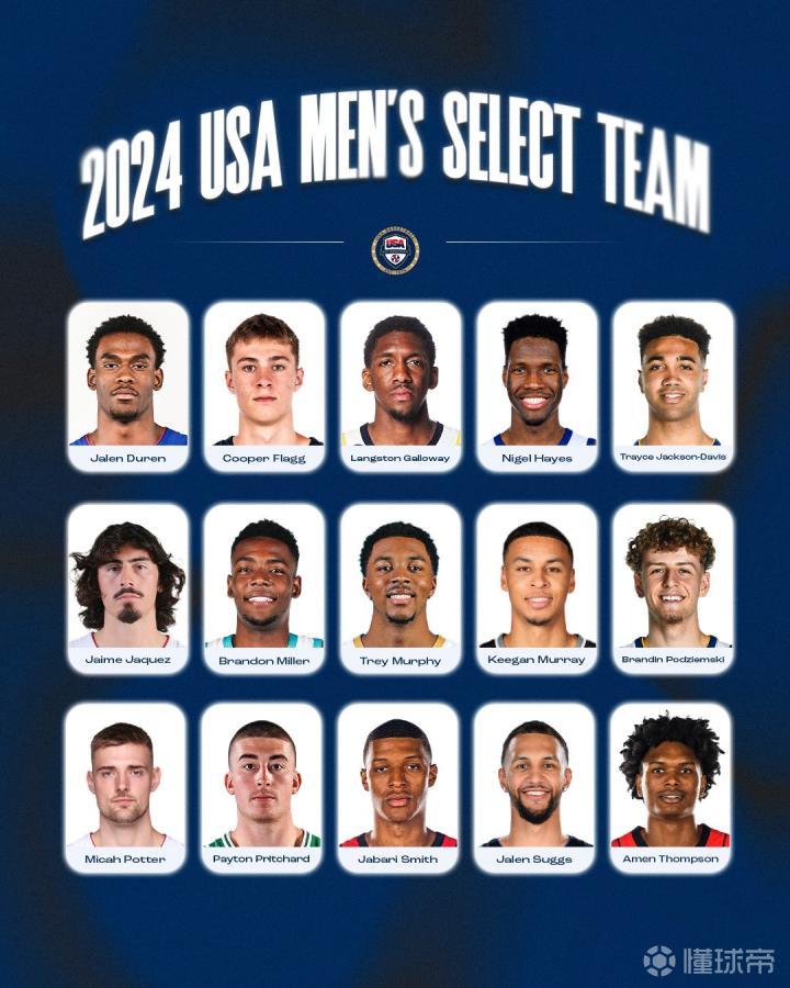 美国男篮陪练队名单:25年状元大热弗拉格、多位NBA新秀在列