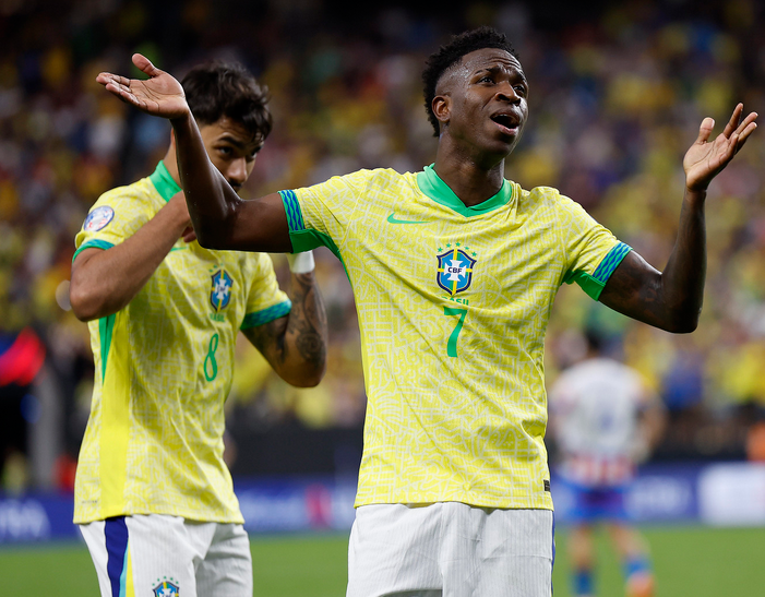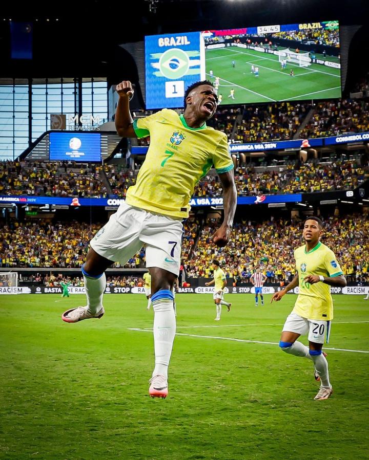 北京时间2024年6月29日上午9点,美国内华达州拉斯维加斯市忠实体育场,2026年美加墨世界杯周期第15战,2024年美国美洲杯小组赛D组次轮,巴西队4-1大胜巴拉圭队。