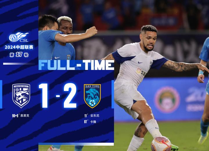 全场比赛结束,武汉三镇1-2负于南通支云。