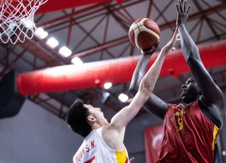 首战面对非洲球队几内亚,中国队在篮板和内线方面劣势较大,对方2.10米的中锋半场就拿下22分9篮板。中国队则在冯俞博和郇斯楠的带领下将分差维持在10分左右。上半场比赛结束,中国队以43-52落后几内亚。