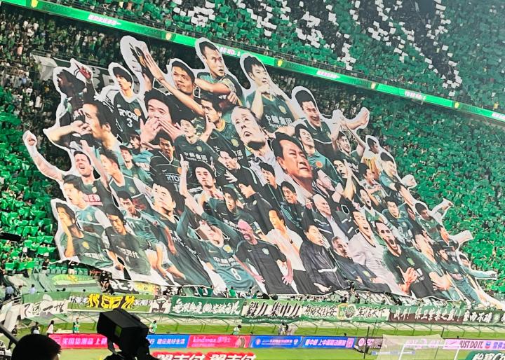 壮观,国安球迷在京鲁大战赛前展示巨型TIFO致敬球队名宿shuchori @懂球帝2024-06-30 20:29北京时间6月30日晚,中超第17轮焦点大战,北京国安在主场迎战山东泰山。在比赛前,国安看台上打出巨型TIFO为球队加油助威。在巨型TIFO中,出现了多位曾经效力国安的球队名宿和现在正在国安效力的球员,国安球迷选择用这样的方式致敬这些捍卫“国安精神”的球队名宿。本场比赛,北京国安取得了梦幻开局,开场仅5分钟,国安凭借外援阿德本罗和法比奥的进球在主场2-0领先山东泰山。展开更多