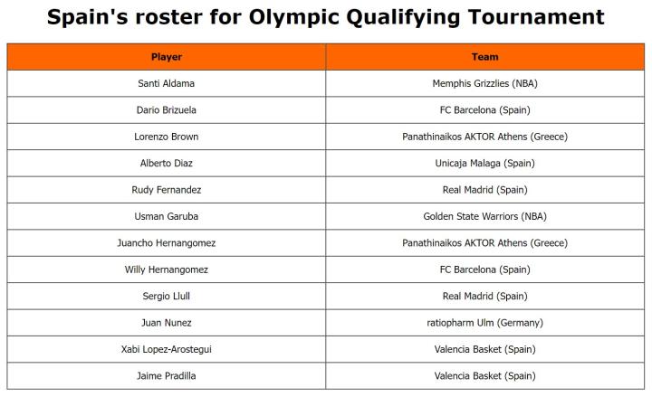 西班牙男篮奥运资格赛12人名单:阿尔达马在列,卢比奥无缘