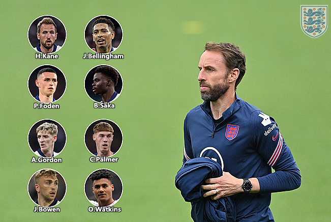 连续经历两场闷战后,英格兰全队上下承受着巨大压力,索斯盖特遭遇了执掌三狮教鞭以来的最严峻调整。卢克-肖的身体状态还不适合作为首发,由萨卡担任左后卫的操作太过冒险,英格兰主力阵容的调整空间并不大,10名球员连续四场比赛首发。索斯盖特不断更换赖斯和贝林厄姆的搭档,试图为进攻体系注入新意,梅努凭借小组赛收官战替补出场后的出色表现赢得了首发。