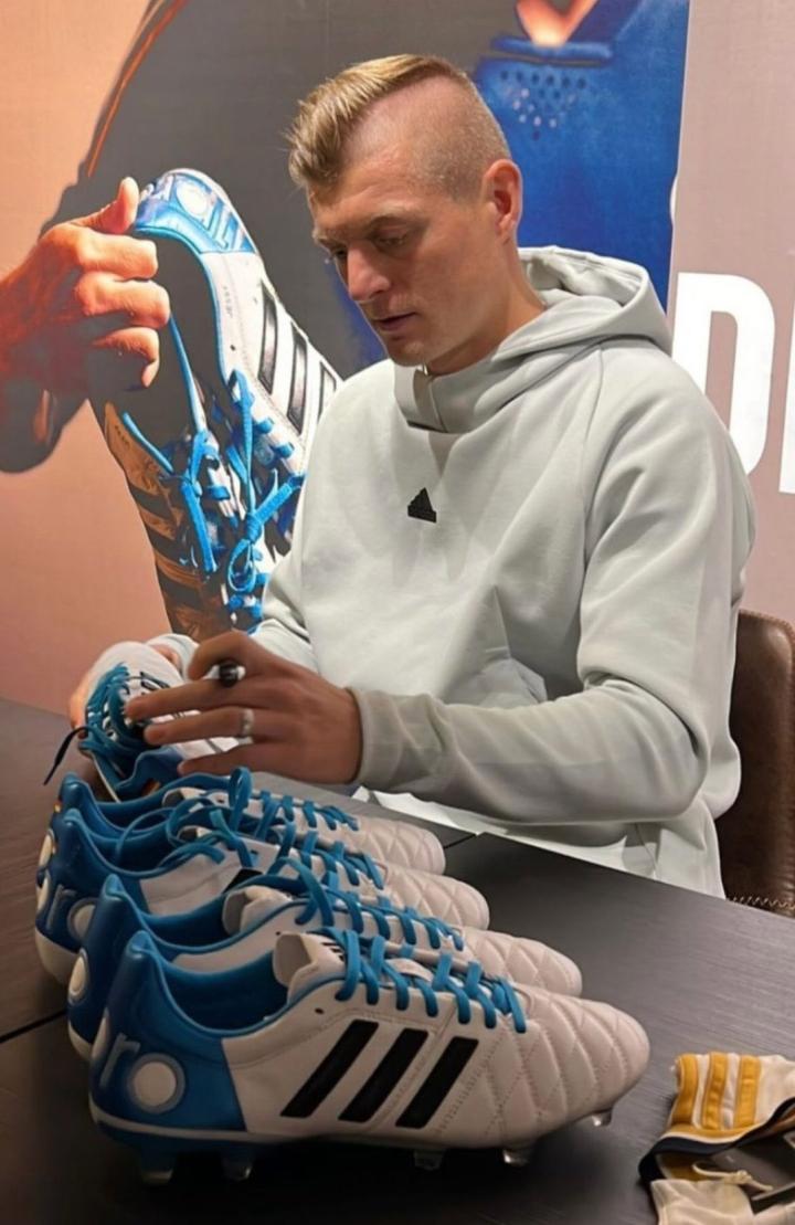克罗斯在2024年欧洲杯上穿着他著名的Adipure 11Pro