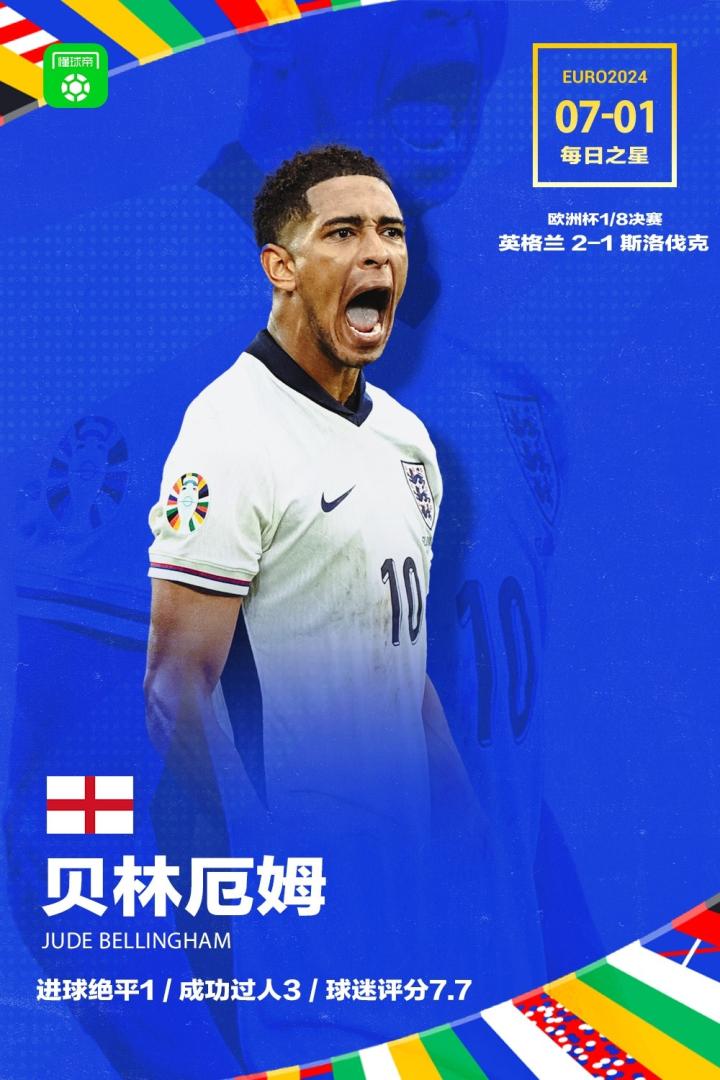 懂球帝欧洲杯每日之星:贝林厄姆