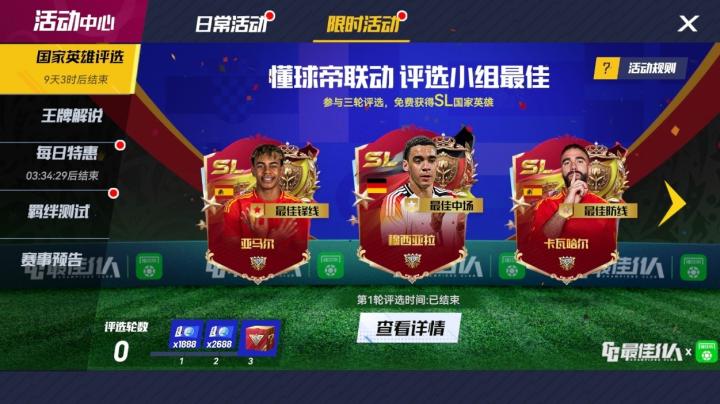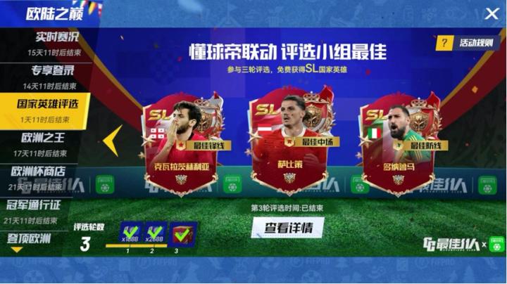 与此同时,淘汰赛阶段,《最佳11人》游戏内还将同步开启【登顶欧洲】跨服pvp大玩法!登顶欧洲将于7月3日开赛,有效制定赛事策略,与其他玩家同台竞争,最高可获得实体签名球衣等奖励!