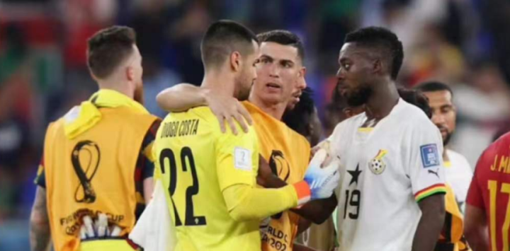 赛后,迪奥戈-科斯塔非常懊恼。于是C罗上前安慰他: