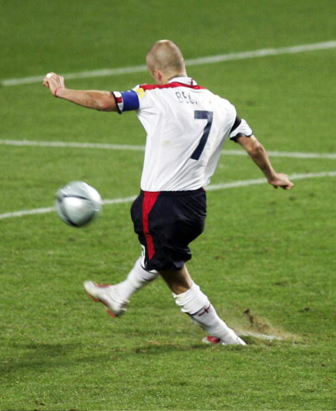 前五轮点球大战中,科斯塔和贝克汉姆各罚失一粒点球,葡萄牙与英格兰战成4-4平,贝克汉姆也留下了一张“经典”踢草皮的照片。