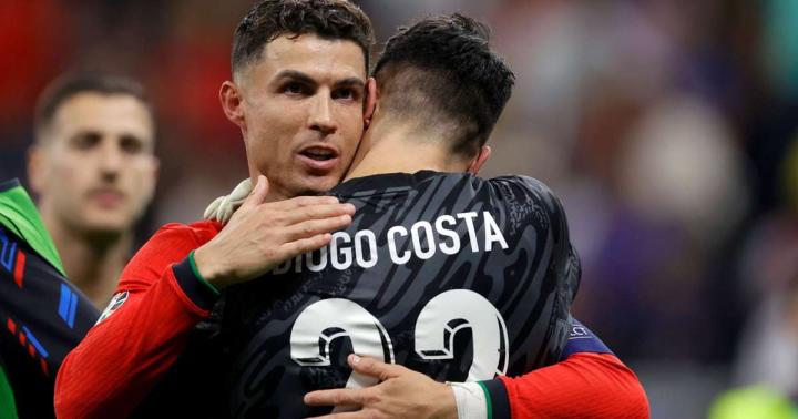 C罗笑了,他紧紧抱住迪奥戈-科斯塔,因为科斯塔拯救了葡萄牙。