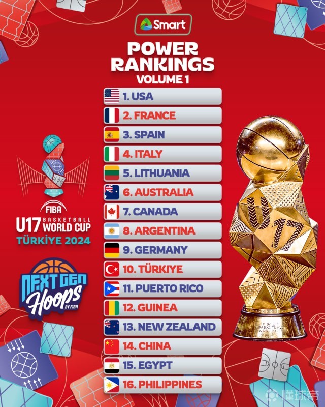 中国U17男篮明天将在淘汰赛对阵立陶宛,后者在实力榜上排第5