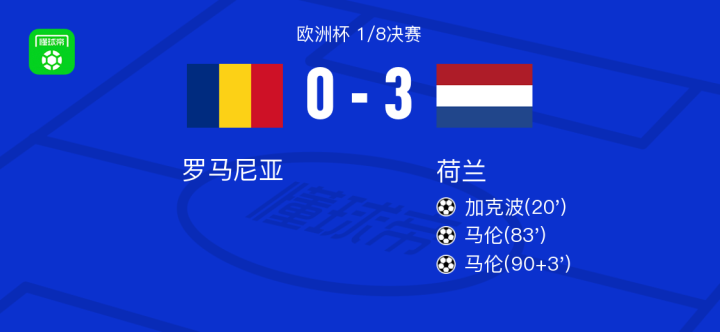 北京时间7月3日罗马尼亚vs荷兰,加克波得到全场最高的9.2分,奥拉鲁得到全场最低的5.5分