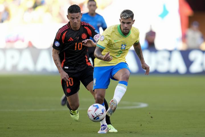 在本届美洲杯D组的末轮比赛中,巴西队开场仅仅12分钟就由拉菲尼亚用一记任意球直接得分敲开了哥伦比亚的球门,哥伦比亚则由丹尼尔-穆尼奥斯在上半场结束前将比分追平,两队也以1-1的比分结束了上半时的较量。