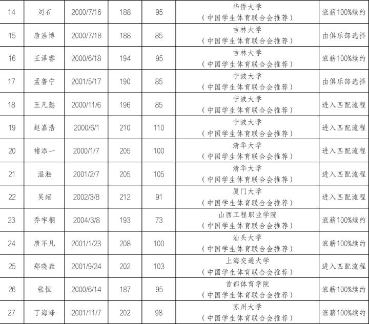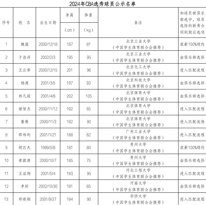 CBA公示参加2024年选秀球员名单:谢智杰在列,杨政参选海淀小冰 @懂球帝2024-07-03 21:28北京时间7月3日,CBA公司公布了今年参加CBA选秀大会的名单,合计97人。谢智杰、王凡懿、温淞、吴超在列,杨政、杨文学参选。CUBAL方面,谢智杰、王凡懿、温淞、吴超均报名参选。此外,前陕西信达中锋杨文学也报名参选。即将年满31岁的网红球员杨政个人报名参选。展开更多