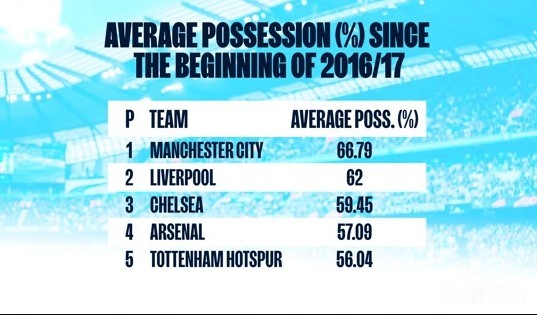 瓜迪奥拉要求他的每支球队所做的所有事情的核心都是控制球权,这就是为什么在他的带领下,曼城比其他球队拥有更多的控球权。