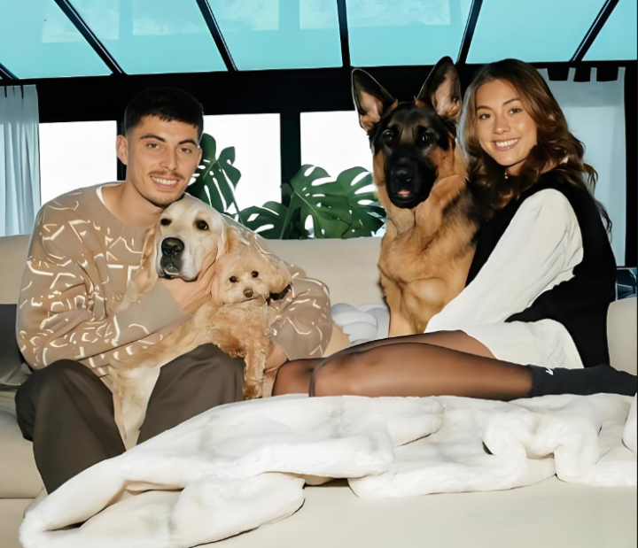 索菲亚平日里有三大爱好:爱狗、爱足球、爱哈弗茨,在两人的亲密合影中,宠物狗总是出现在其中。目前两人已经订婚。