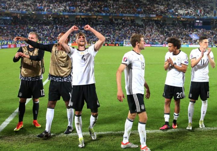 德国是参加1/4决赛不止一次的球队里,唯一晋级率100%的,他们在1996年2-1克罗地亚、2008年3-2葡萄牙、2012年4-2希腊、2016年1-1(p.6-5)意大利,四次都成功晋级半决赛。俄罗斯与威尔士也是100%,但都是1战1胜。