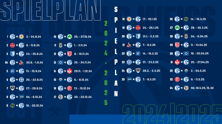沙尔克24/25赛季赛程:首轮战布伦瑞克,末轮战埃弗斯堡