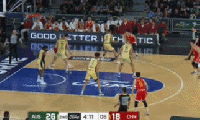 第三节,前三分钟双方又是疯狂打铁一分不得,节中段双方才陆续得分展开拉锯,分差15分上下,但澳大利亚突然一波三分雨轰出20-0将分差拉大至33分, 好在节末余嘉豪打成2+1止血,三节结束,中国男篮34-65澳大利亚。