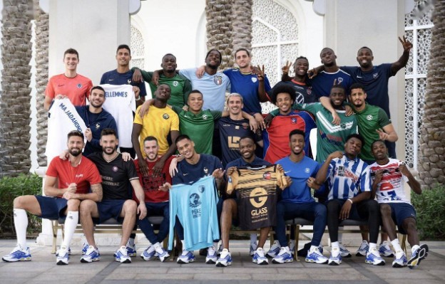 北京时间周六凌晨3点,法国队将迎来欧洲杯四分之一决赛对阵葡萄牙的比赛,赛前,法国队全员穿上了各自母队的球衣进行合影。