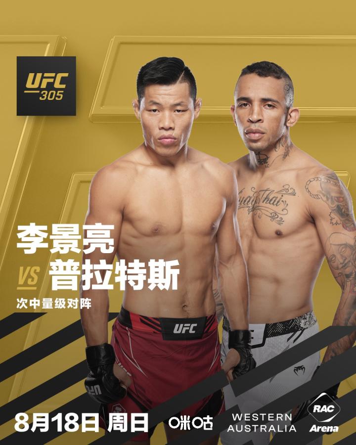 UFC官方:李景亮8月18日复出,对决巴西新人悍将普拉特斯
