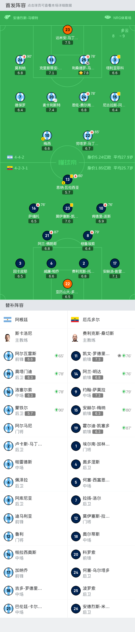 凯文-罗德里格斯补时头球绝平,厄瓜多尔1-1阿根廷